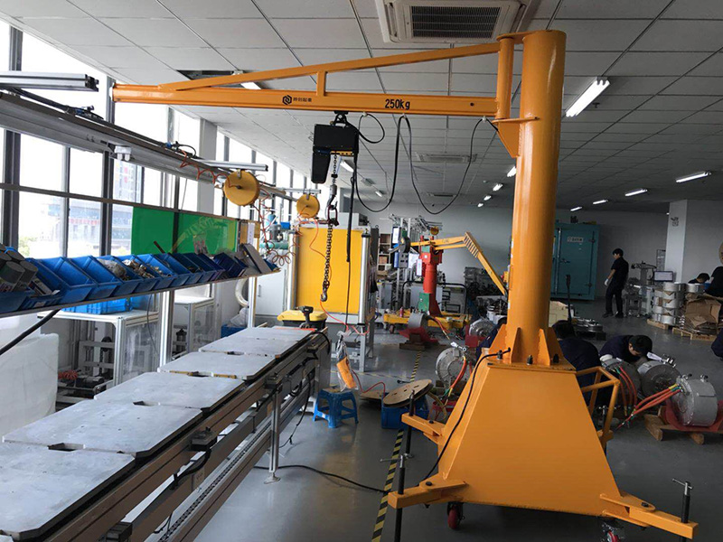 UPMAX250kg移動(dòng)式懸臂吊,可以在車(chē)間隨意移動(dòng)吊取重物。定柱式旋臂起重機(jī)合作了可靠性高的AMH型環(huán)鏈電動(dòng)葫蘆尤其適用于短距離,運(yùn)用頻頻,密布性吊運(yùn)作業(yè),具有高效、節(jié)能、省勁、占地面積小,易于操作與修理等特色。環(huán)鏈電動(dòng)葫蘆有起升和在橫梁上往復(fù)運(yùn)行的功用,旋臂梁可由反轉(zhuǎn)設(shè)備上的的減速機(jī)股動(dòng)滾輪進(jìn)行反轉(zhuǎn)運(yùn)動(dòng),電器操控箱裝置在環(huán)鏈葫蘆上。 本機(jī)操作通過(guò)手電門(mén)按鈕實(shí)現(xiàn)。手電門(mén)有八個(gè)按鈕,別離操控快升、快降、慢升、慢降、左右反轉(zhuǎn)及葫蘆小車(chē)的水平前后行走。留意:1、 操作時(shí)不得一起按下快慢按鈕和同一電機(jī)的橫豎轉(zhuǎn)按鈕 。